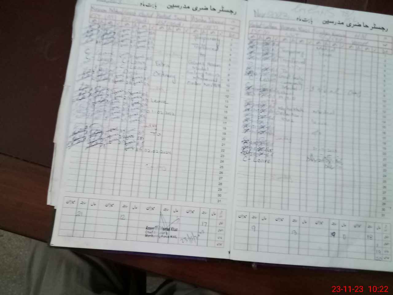 | CNIC | Full Name | Designation | R/C | Absence During Last Calender Month |