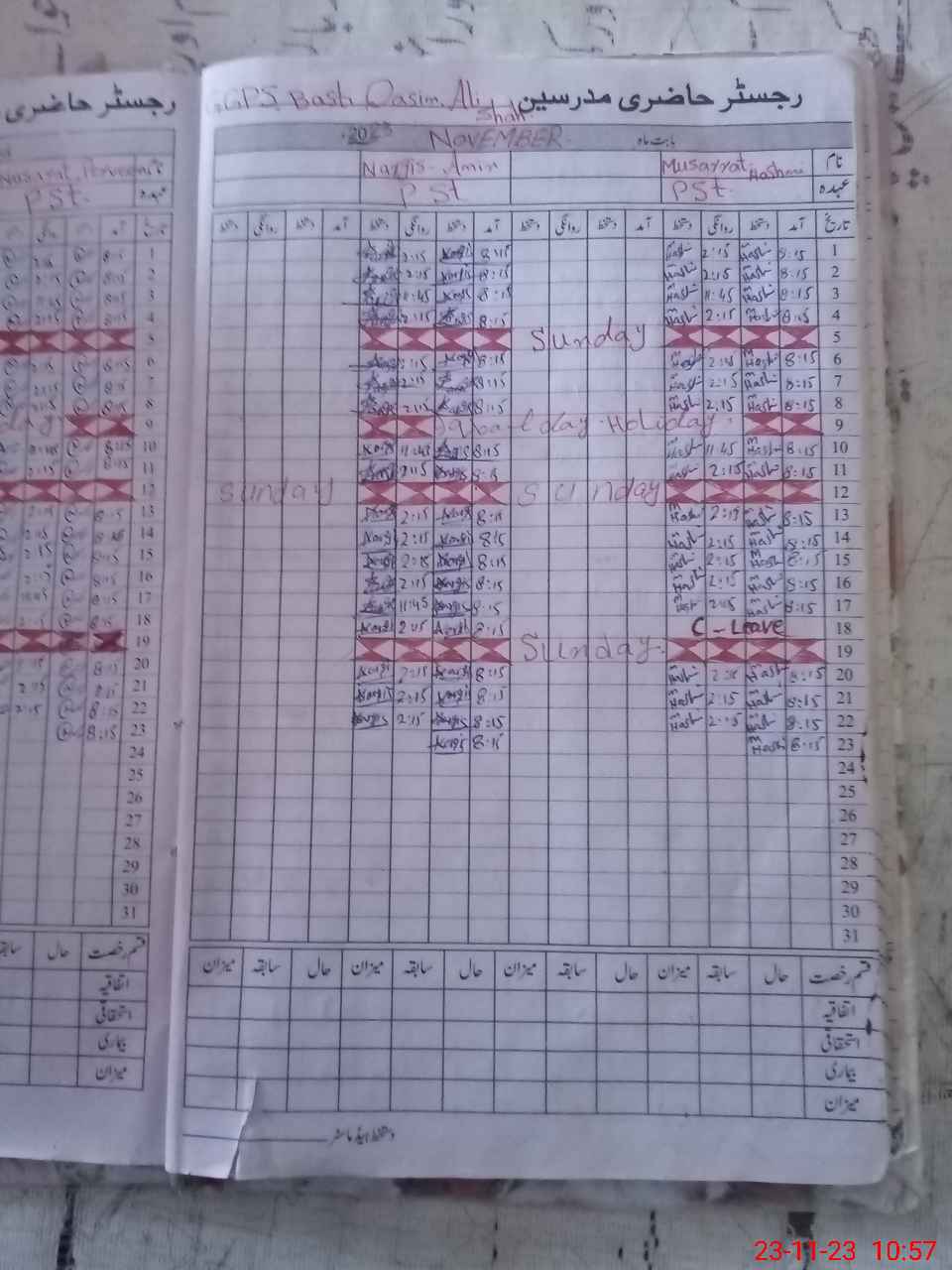 | CNIC | Full Name | Designation | R/C | Absence During Last Calender Month |