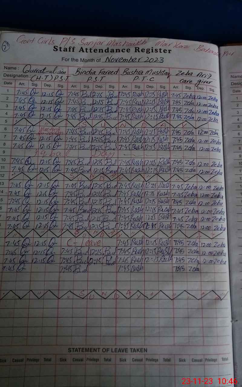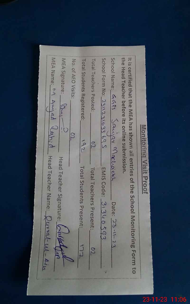 | EMIS Code: 31340593 | Name of School: GGPS SANJAR MASHAIEKH | |||