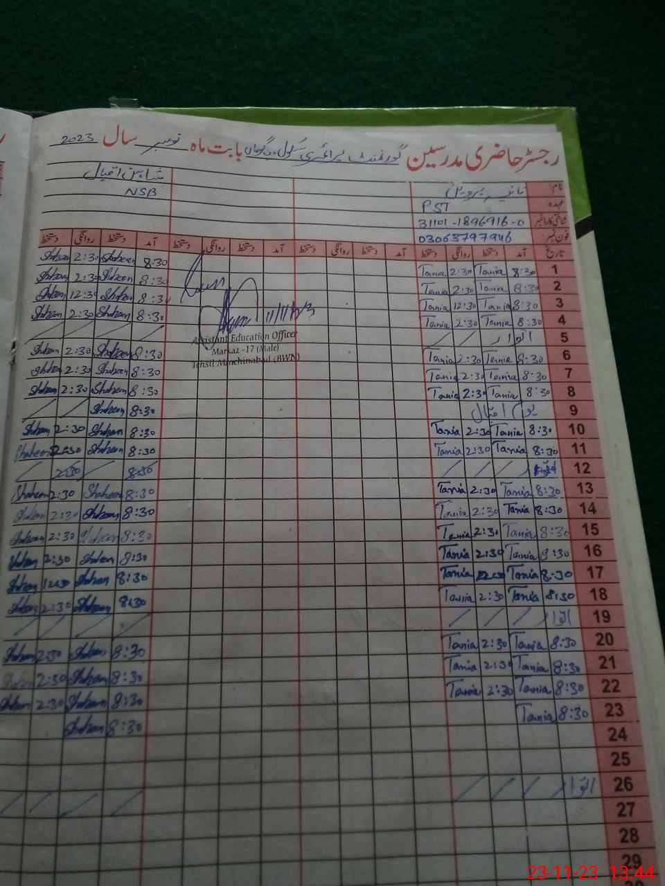 | Name: TA**** PA**** Designation: (School Headmaster's/Headmistress's) PST Phone/Cell Number: 03**** |