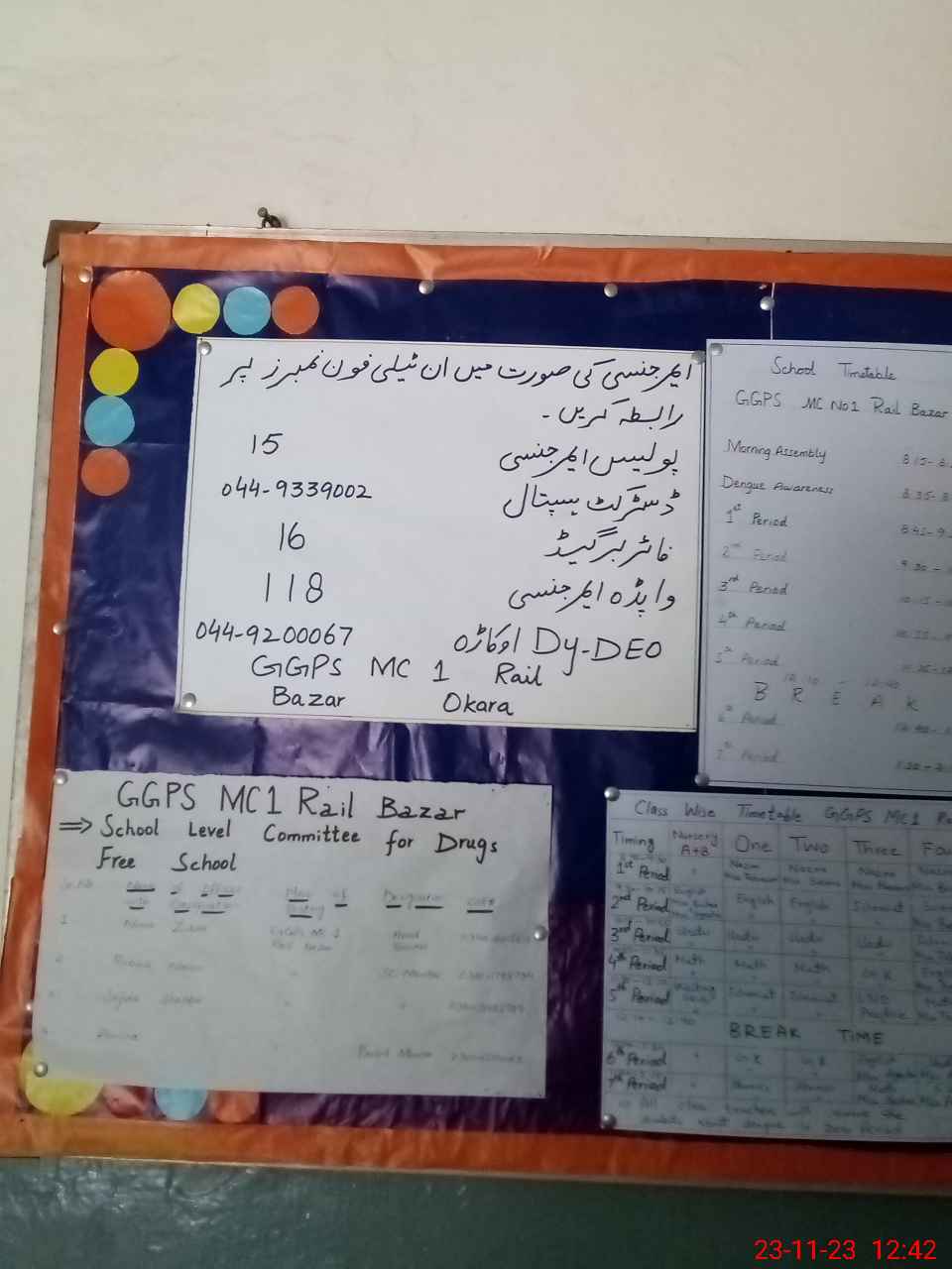 | EMIS Code: 39320956 | Name of School: GGPS MC NO. 1 RAIL BAZAR | |||