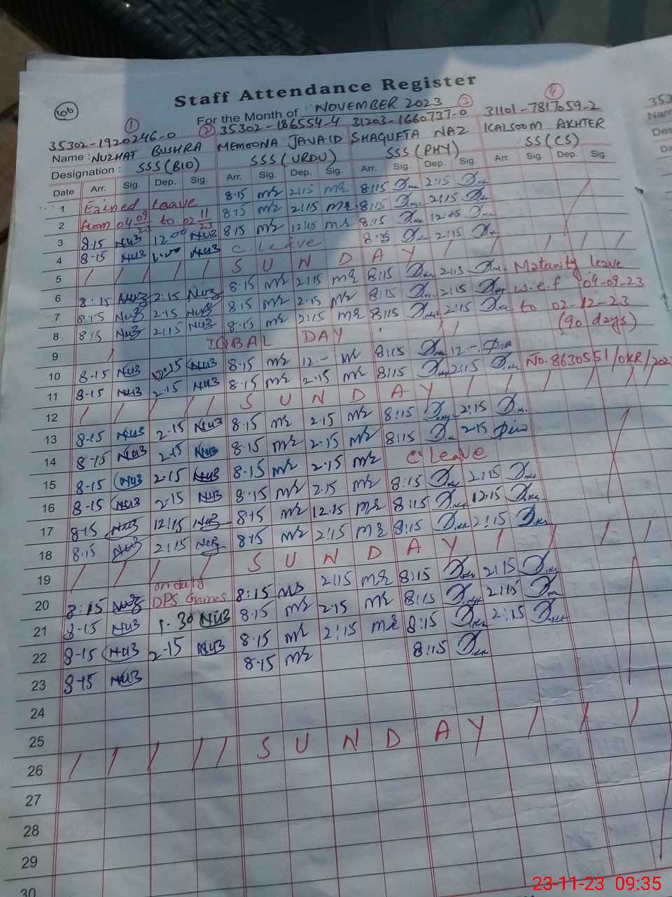 | 31**** | Ka**** Ak**** | 1 | 31 | 0 | 0 | 31 | 0 | 0 | 0 | 0 | 0 | Maternity | |