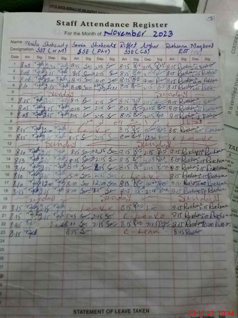 | CNIC | Full Name | Designation | R/C | Absence During Last Calender Month |