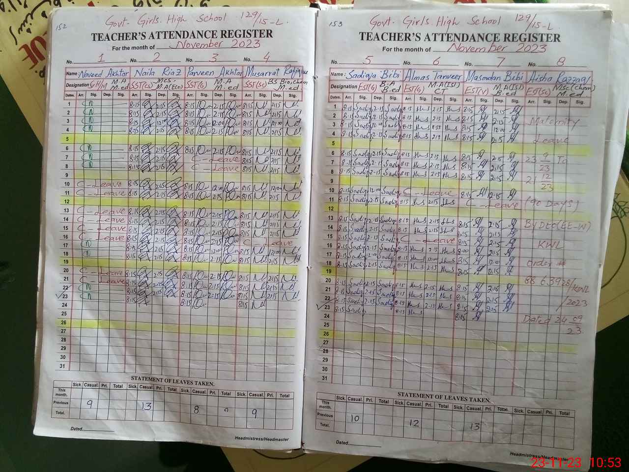 | Leave | Duty | Absent | Maternity | Medical | Ex- Pak |