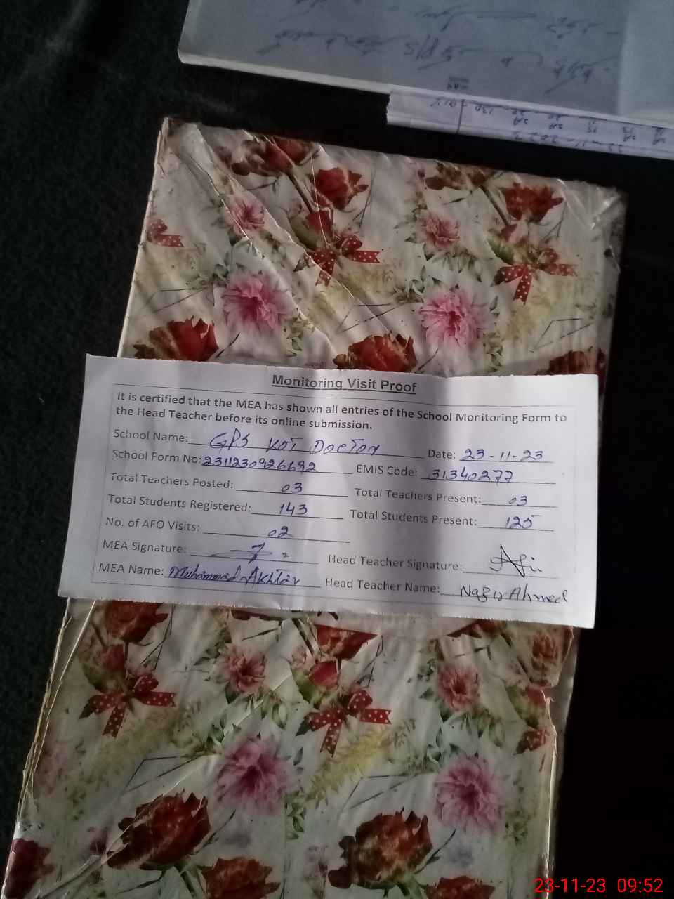 | EMIS Code: 31340277 | Name of School: GPS KOT DOCTOR | |||