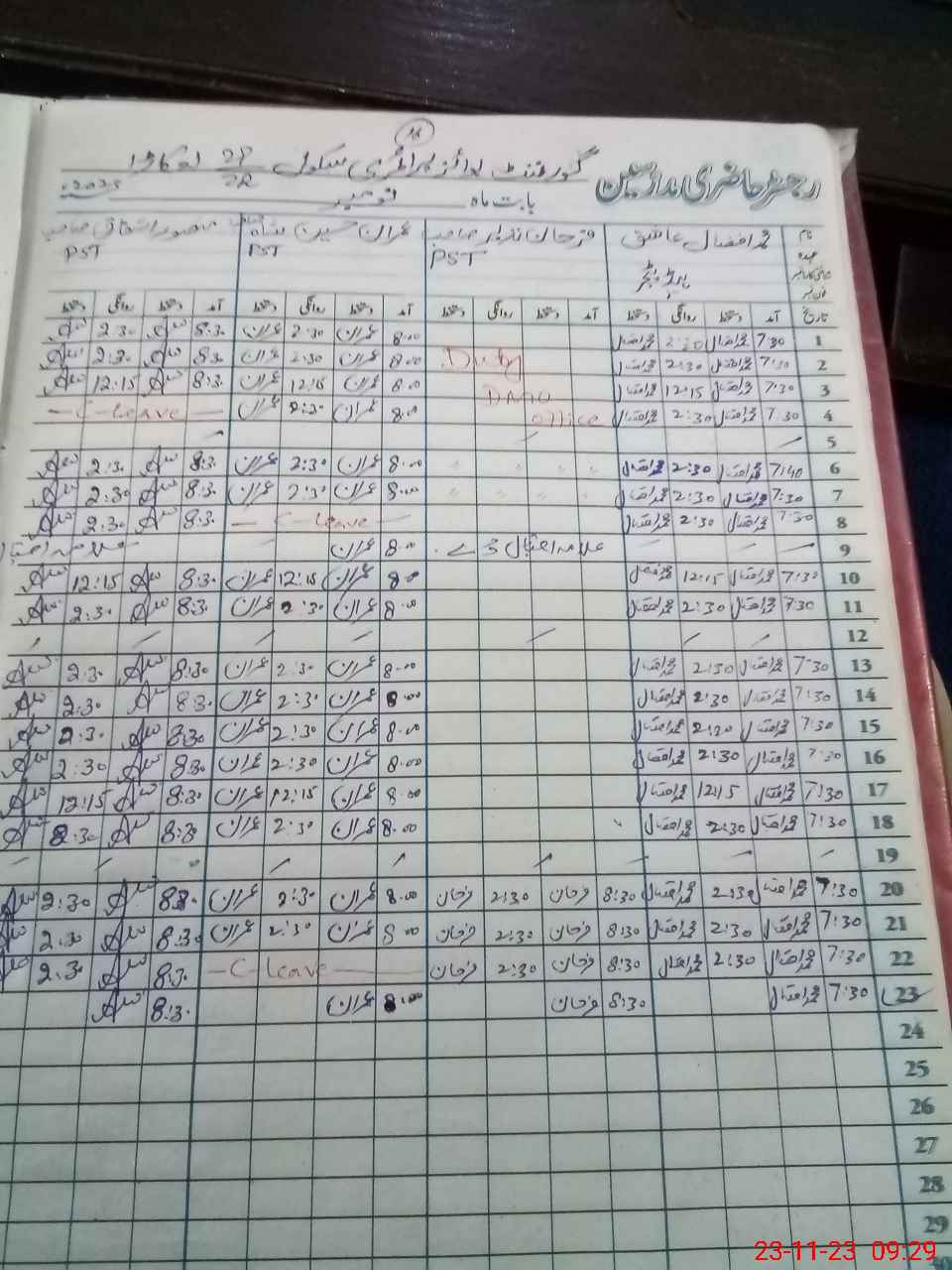 | CNIC | Full Name | Designation | R/C | Absence During Last Calender Month |