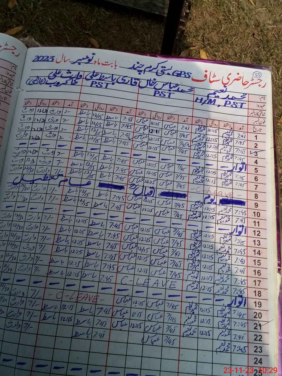 | CNIC | Full Name | Designation | R/C | Absence During Last Calender Month |