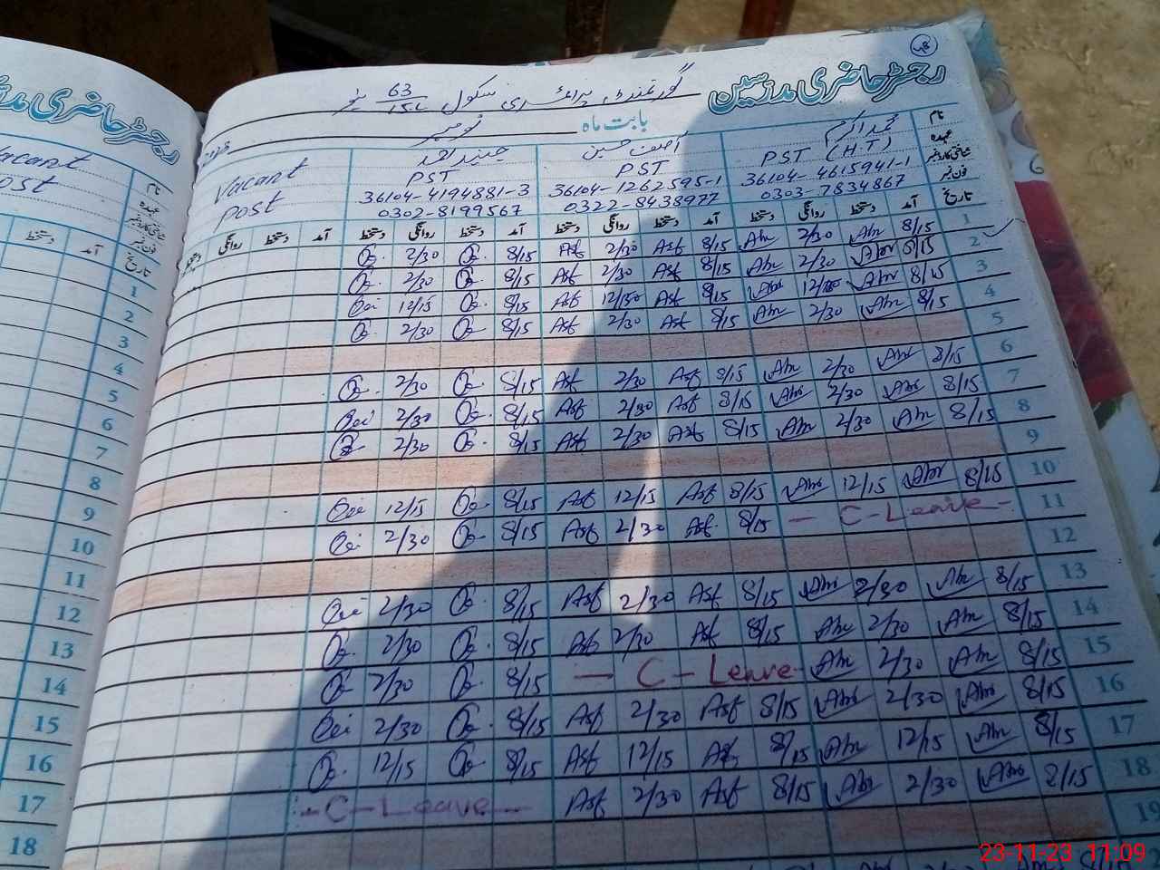 | Name: M.AK**** Designation: (School Headmaster's/Headmistress's) PST Phone/Cell Number: 03**** |