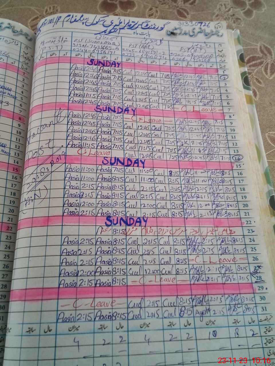 | Leave | Duty | Absent | Maternity | Medical | Ex- Pak |