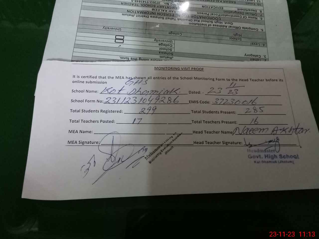 | Certified that this School was Inspected by the Undersigned MEA/DMO Today and the Information Stated Above is as Per Record. | |||||