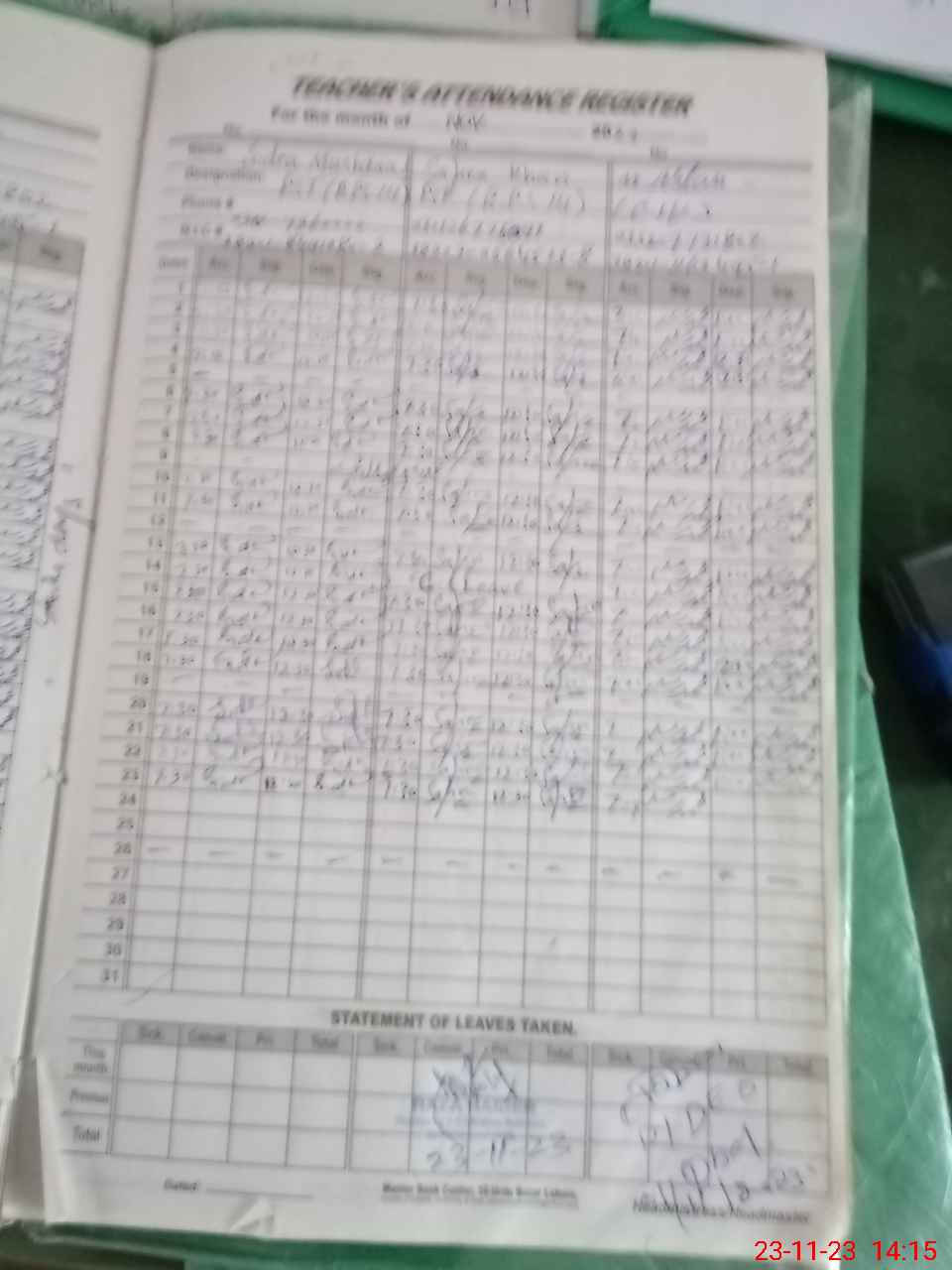 | CNIC | Full Name | Designation | R/C | Absence During Last Calender Month |