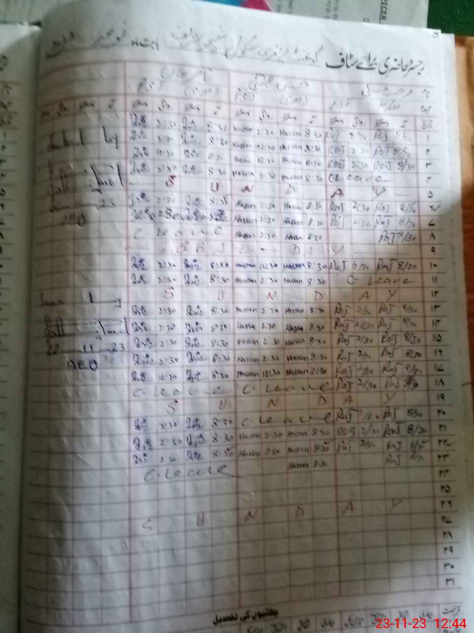 | CNIC | Full Name | Designation | R/C | Absence During Last Calender Month |