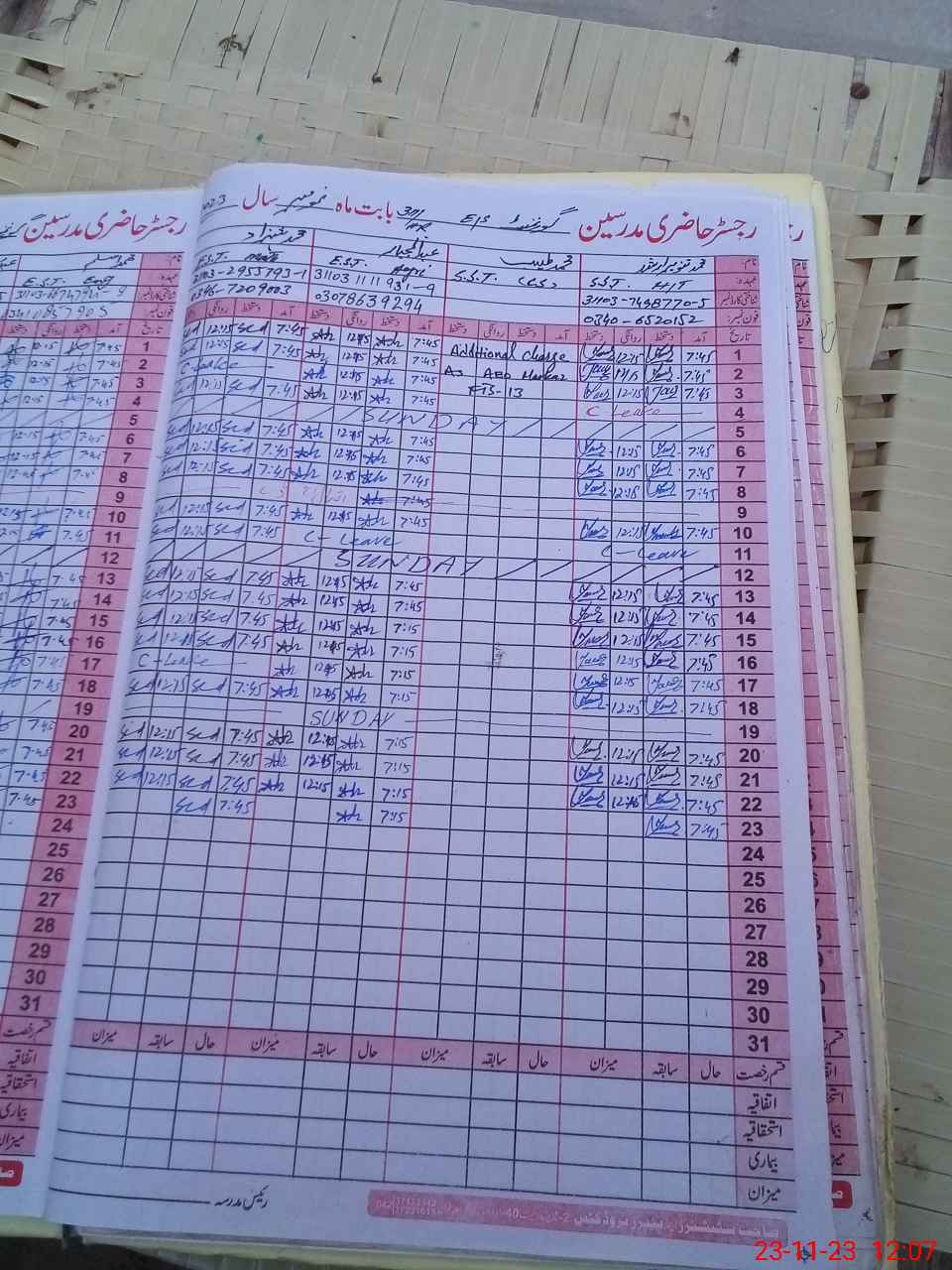 | Name: MTa**** Ar**** Designation: (School Headmaster's/Headmistress's) S.S.T.(Arts) Phone/Cell Number: 03**** |