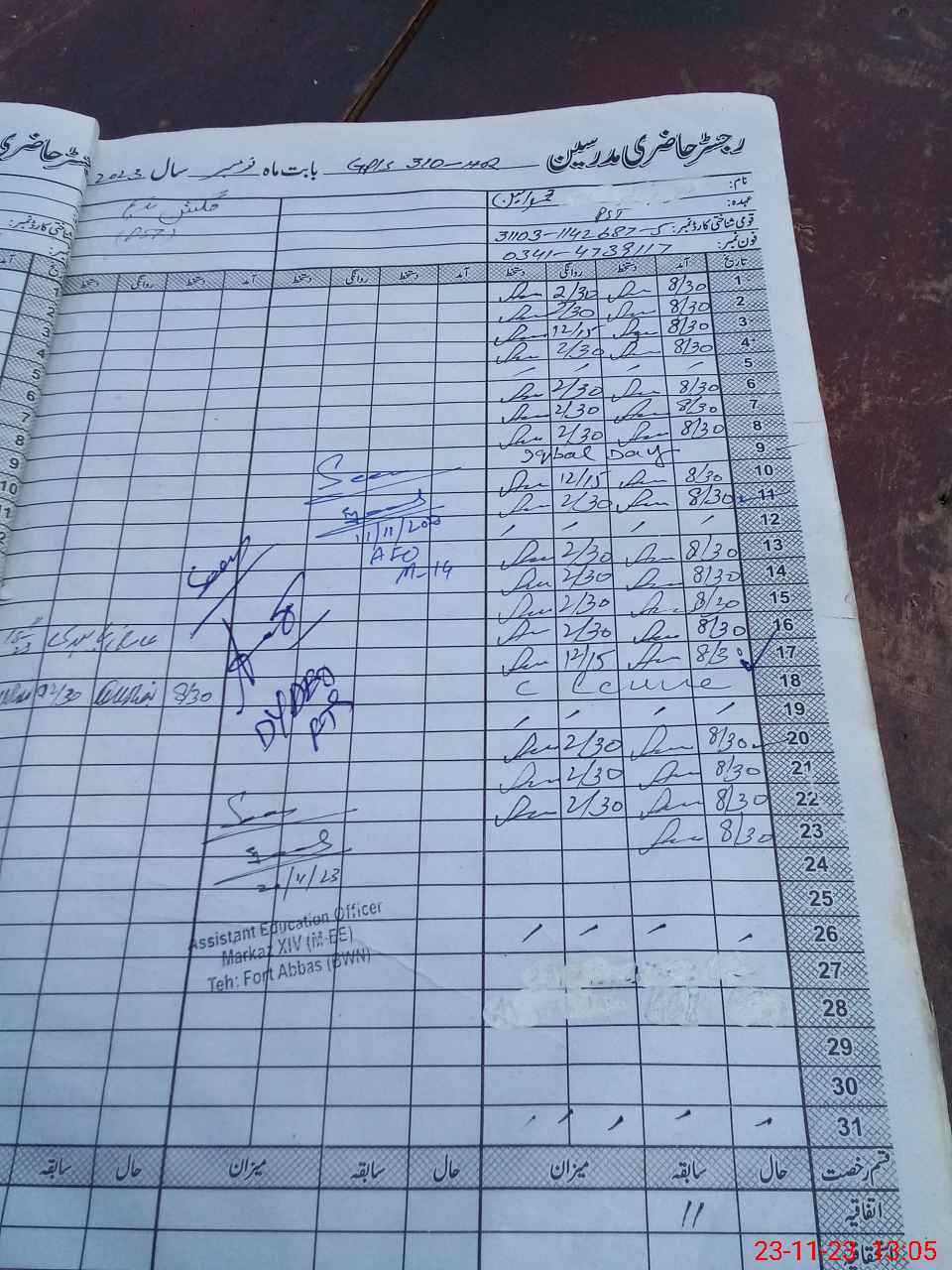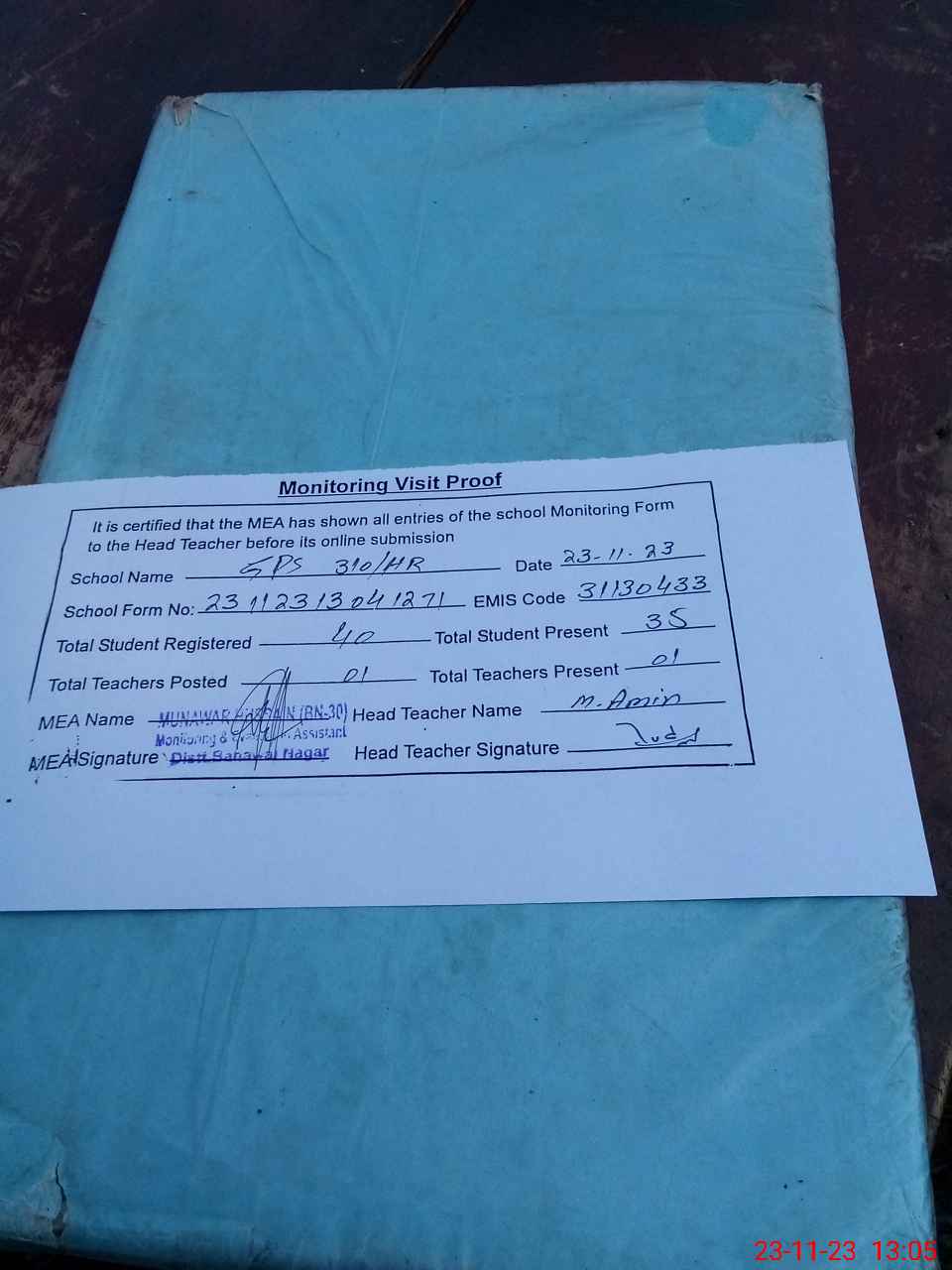 | EMIS Code: 31130433 | Name of School: GPS CHAK NO. 310/HR DERA ALLAH YAR | |||