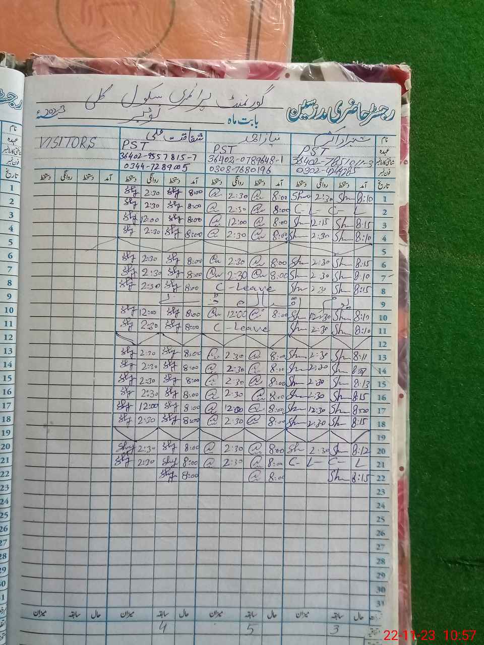| Name: SH**** AK**** Designation: (School Headmaster's/Headmistress's) PST Phone/Cell Number: 03**** |