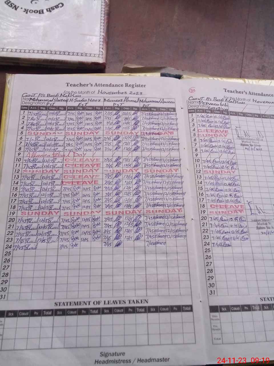 | Name: Mo**** SH**** Designation: (School Headmaster's/Headmistress's) PST Phone/Cell Number: 03**** |