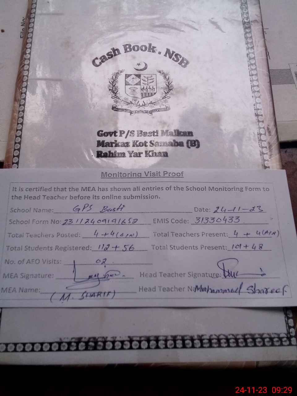 | Attendance Register | Head Teacher | MEA with School | Visit Proof |