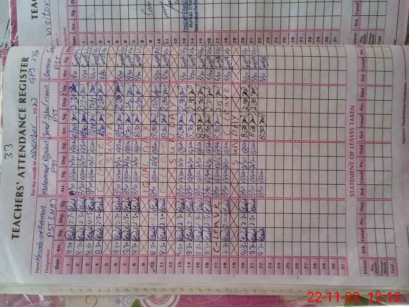 | Name: MU**** RI**** Designation: (School Headmaster's/Headmistress's) PST Phone/Cell Number: 03**** |