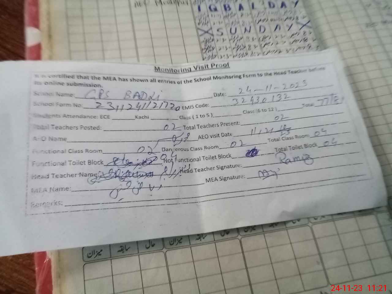 | EMIS Code: 32430132 | Name of School: GPS BADLI | |||