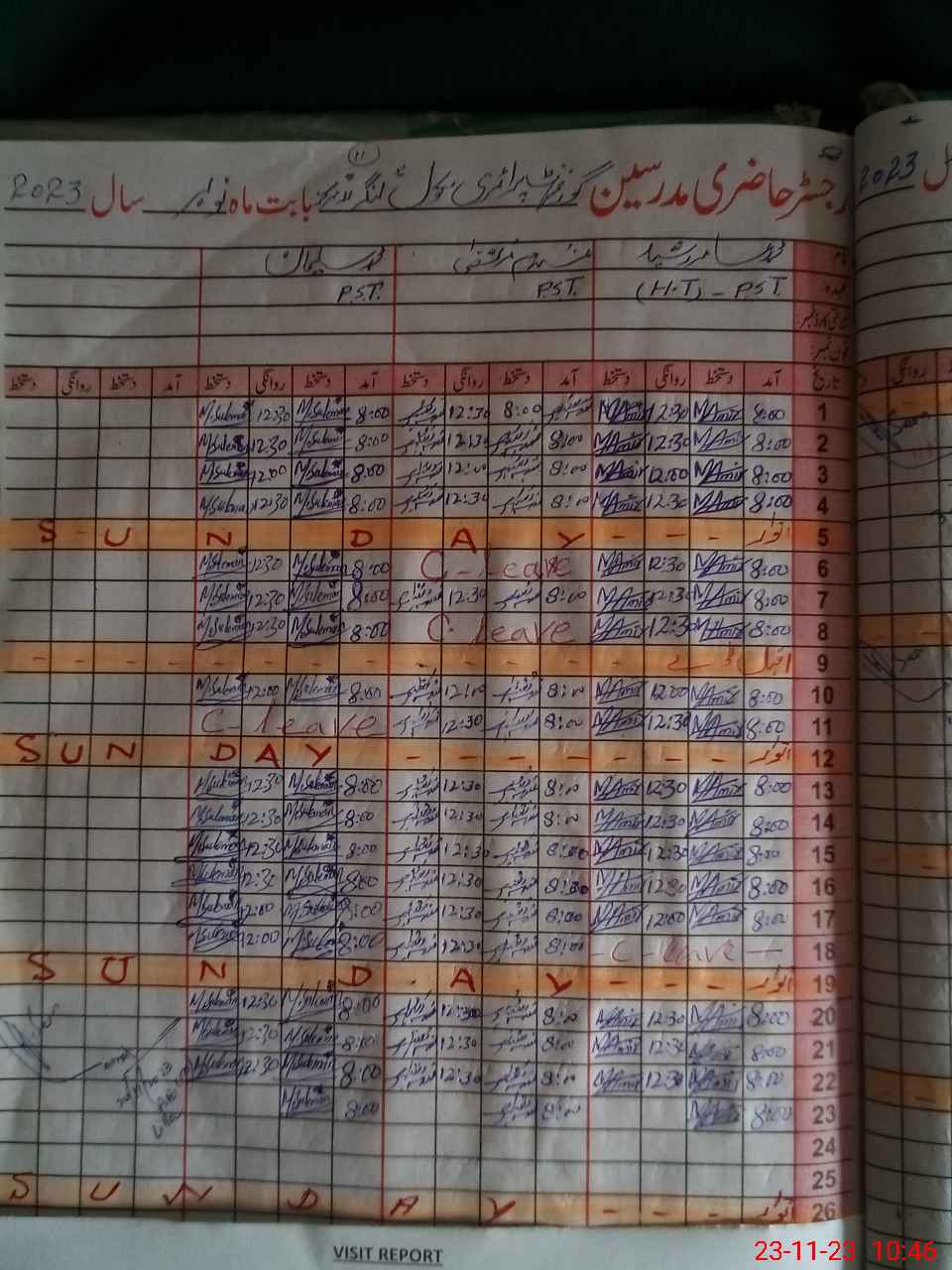 | CNIC | Full Name | Designation | R/C | Absence During Last Calender Month |