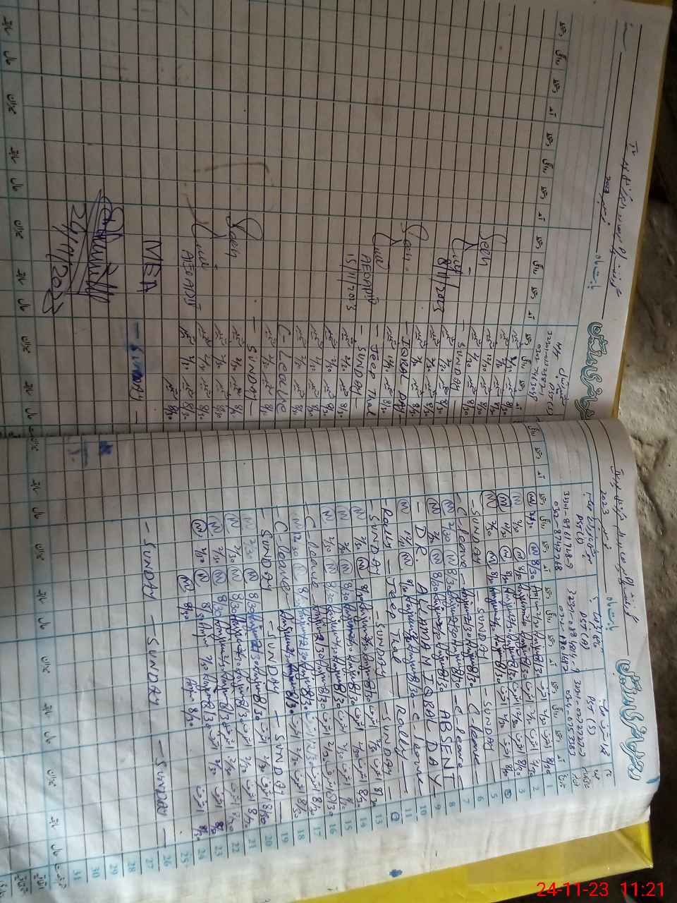 | CNIC | Full Name | Designation | R/C | Absence During Last Calender Month |