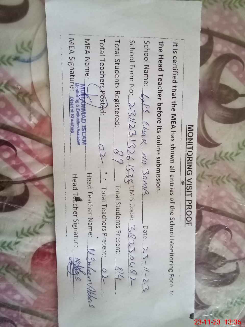 | EMIS Code: 38230482 | Name of School: GPS CHAK NO. 30 MB | |||