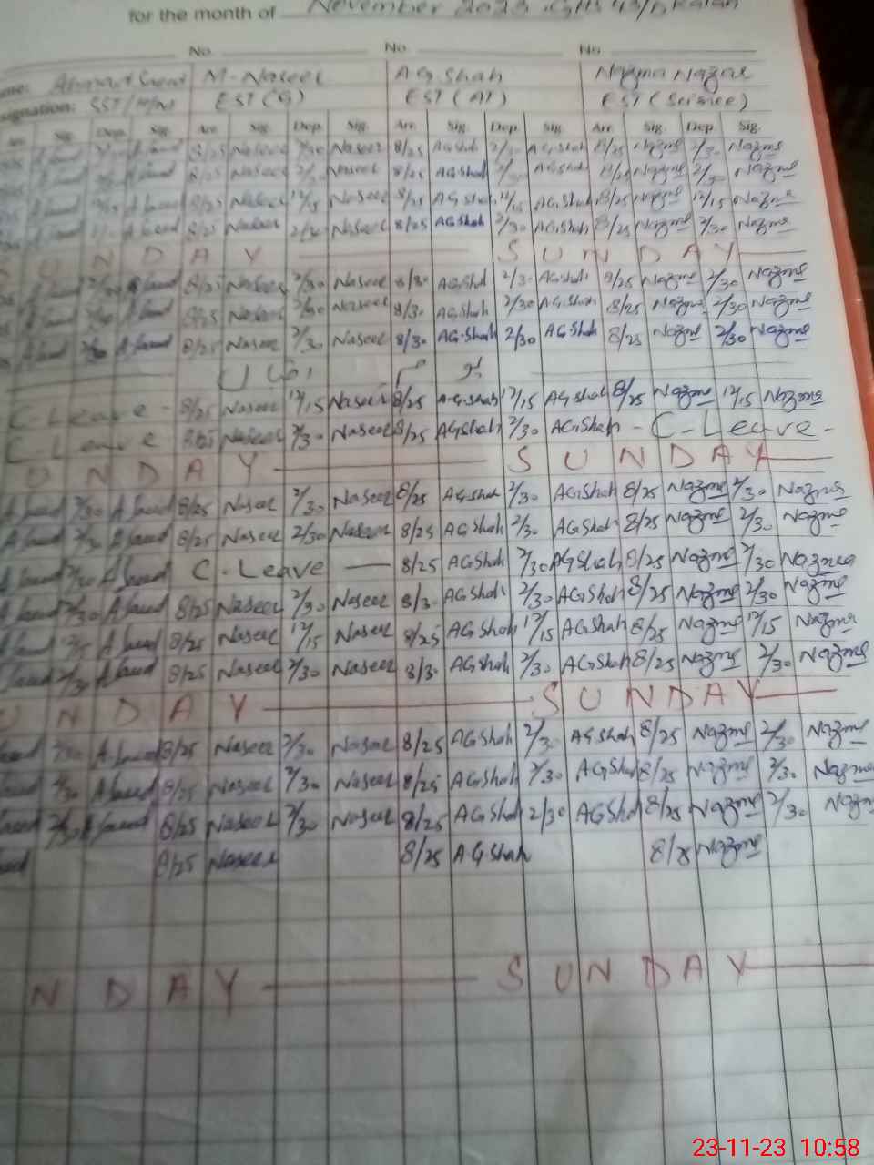 | CNIC | Full Name | Designation | R/C | Absence During Last Calender Month |