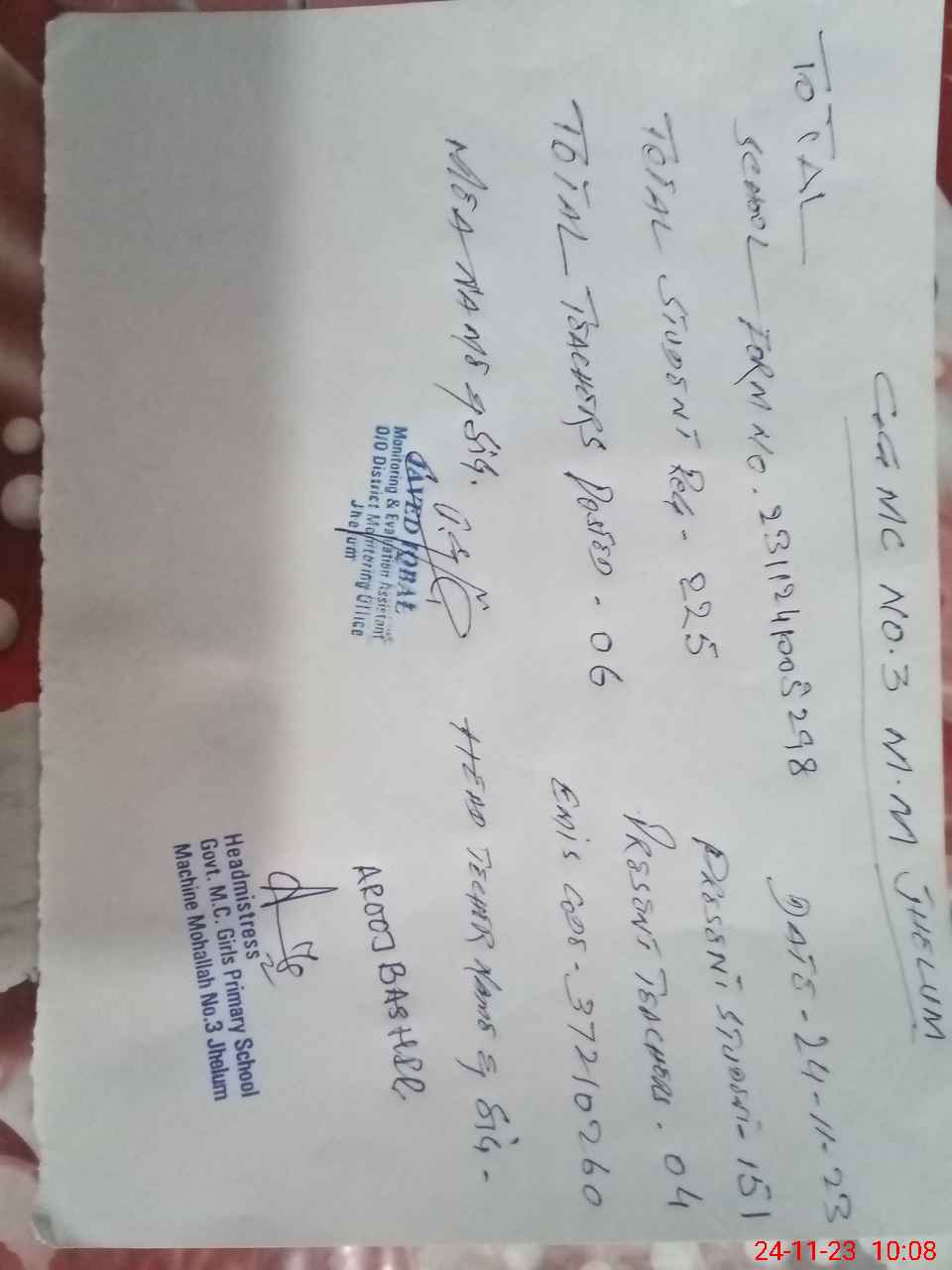 | EMIS Code: 37210260 | Name of School: GGPS MC NO.3 MACHINE MOHALLAH | |||