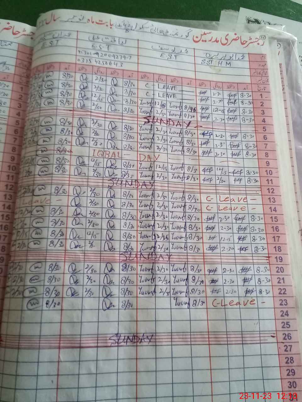 | Name: MU**** AB**** HU**** Designation: (School Headmaster's/Headmistress's) S.S.T.(Arts) Phone/Cell Number: 03**** |