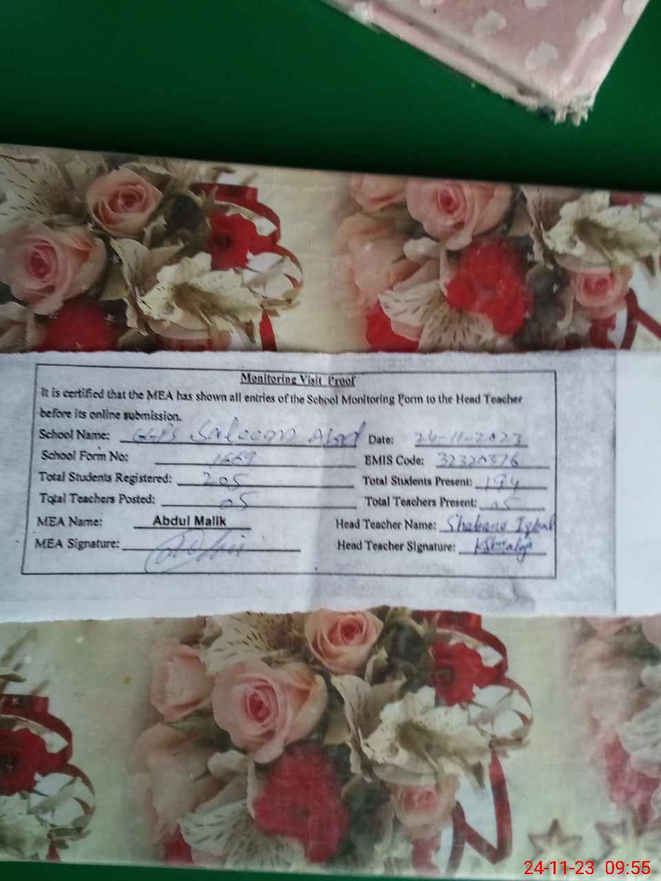 | EMIS Code: 32320376 | Name of School: GGPS SALEEM ABAD | |||