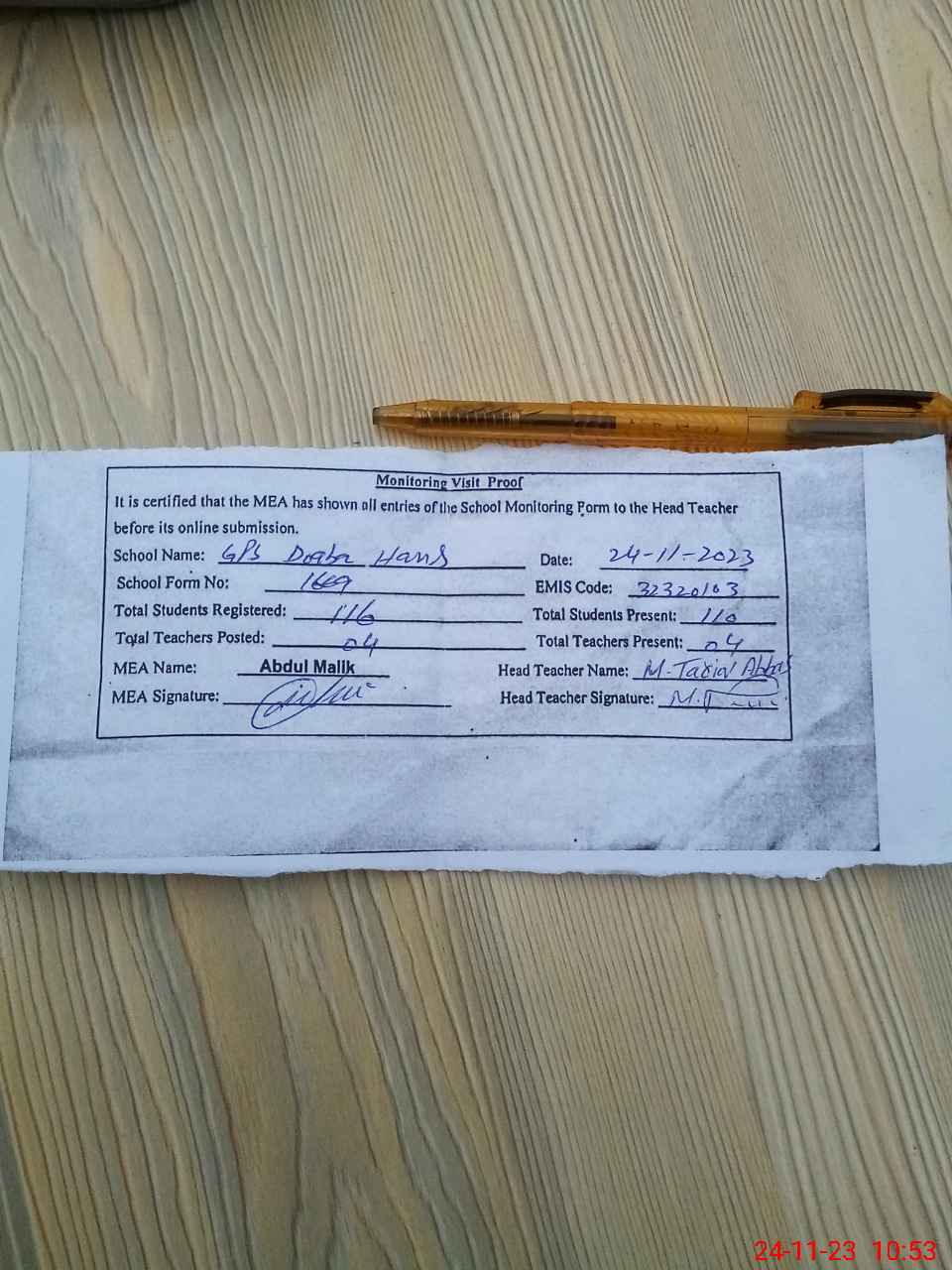 | EMIS Code: 32320103 | Name of School: GPS DOABA HANS | |||
