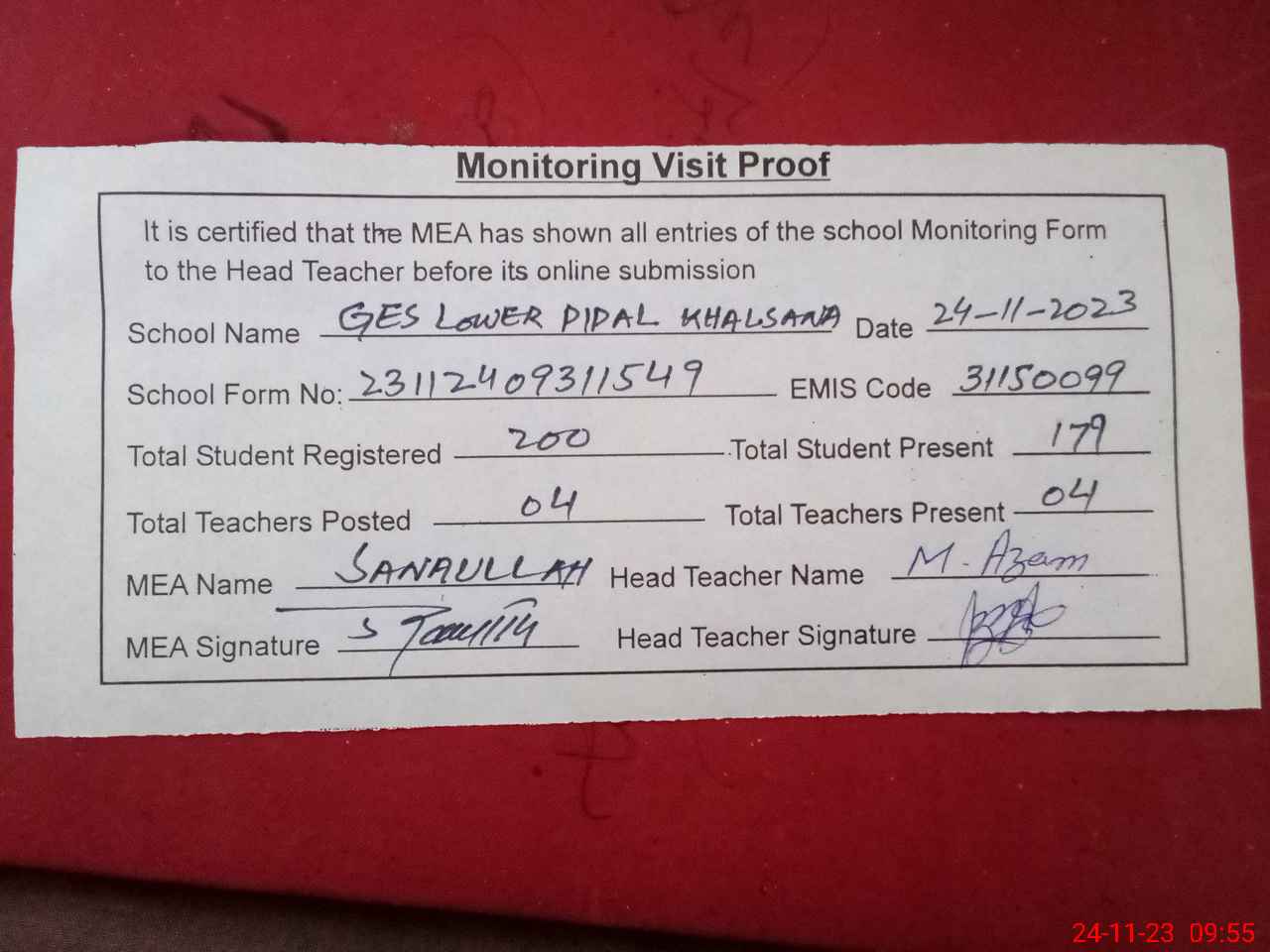 | EMIS Code: 31150099 | Name of School: GES LOWER PIPAL KHALSANA | |||