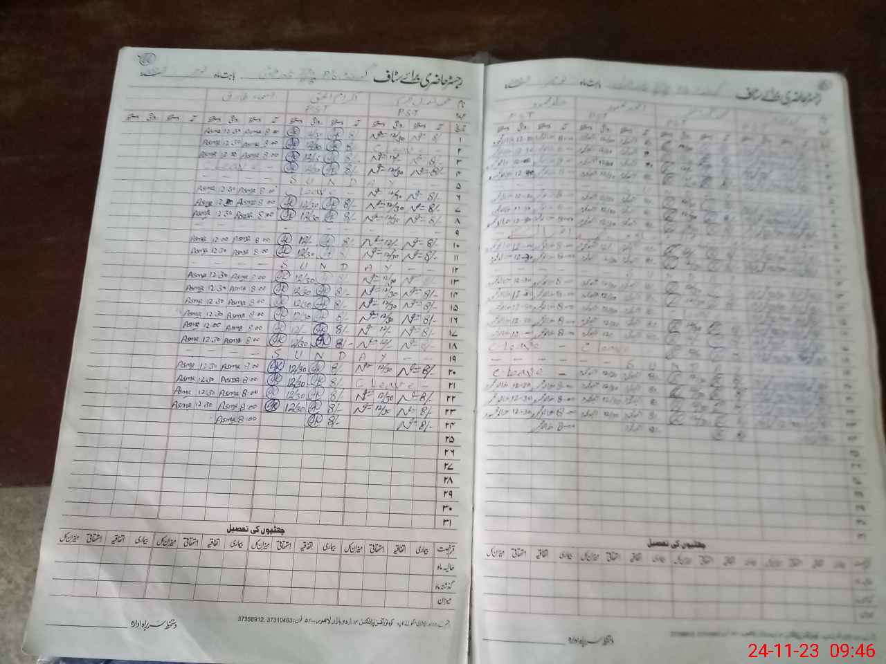 | CNIC | Full Name | Designation | R/C | Absence During Last Calender Month |