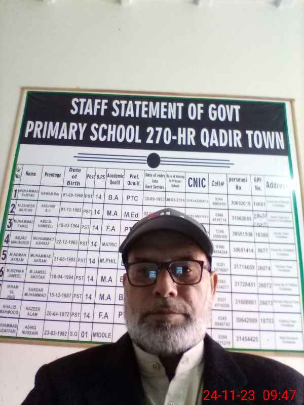 | EMIS Code: 31130081 | Name of School: GPS CHAK NO.270/HR QADIR TOWN | |||