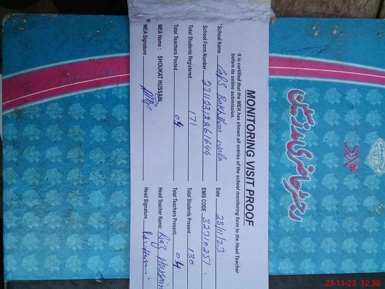 | EMIS Code: 32310251 | Name of School: GPS BAKHSHAN WALA | |||