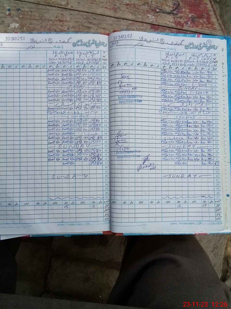 | Name: RI**** HU**** Designation: (School Headmaster's/Headmistress's) PST Phone/Cell Number: 03**** |