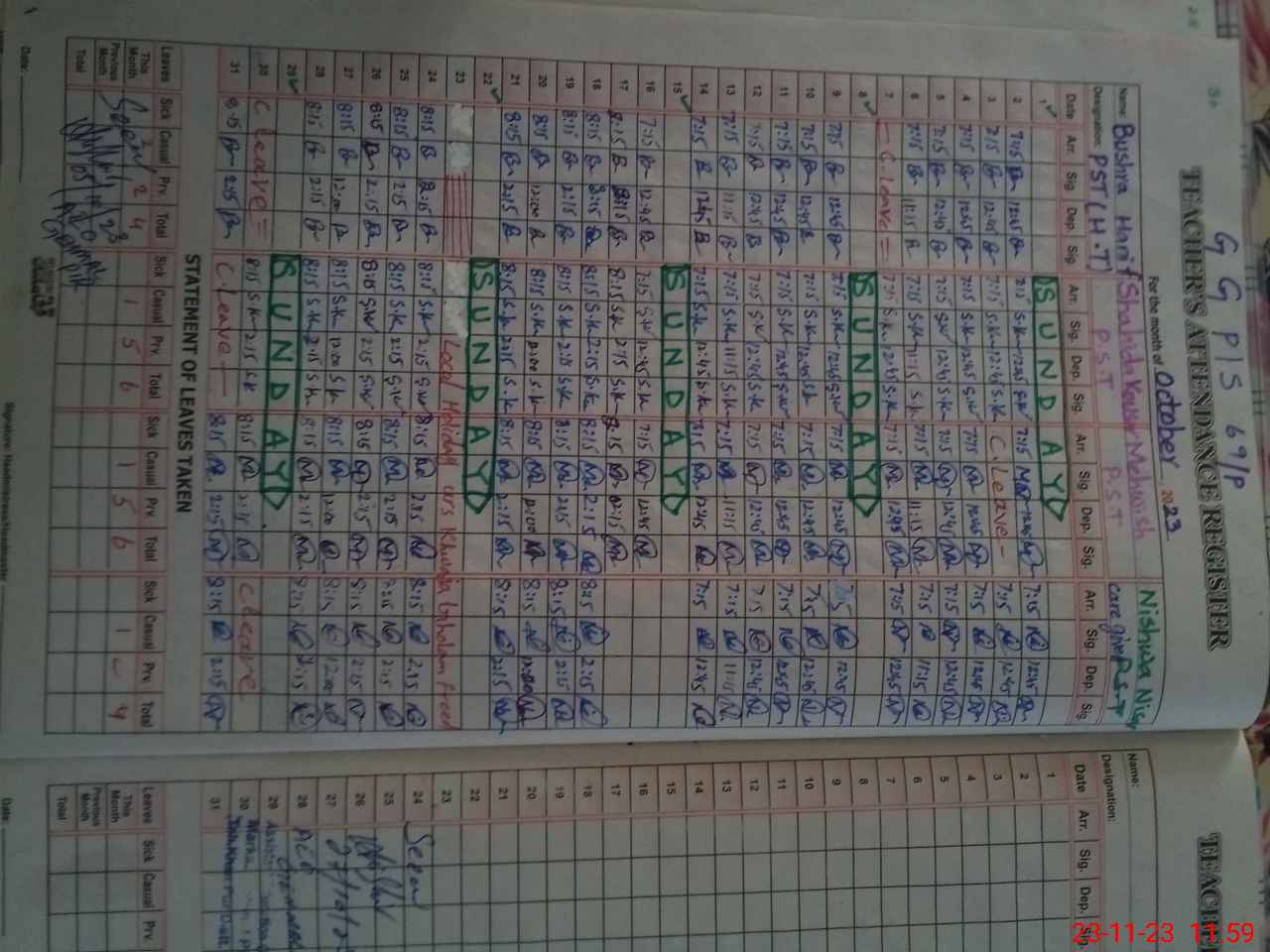 | Name: BU**** HA**** Designation: (School Headmaster's/Headmistress's) PST Phone/Cell Number: 03**** |