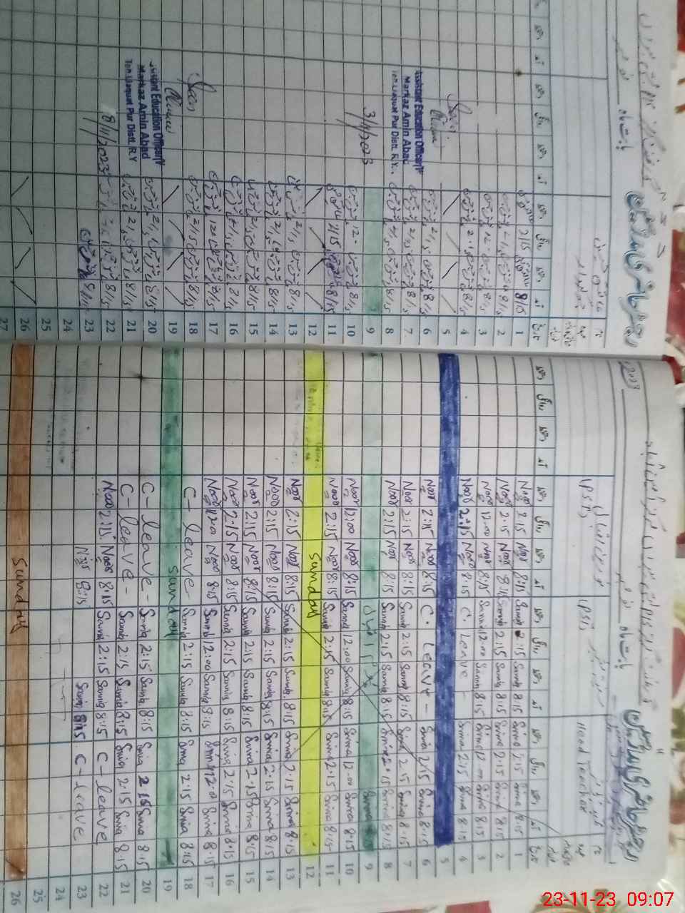| CNIC | Full Name | Designation | R/C | Absence During Last Calender Month |