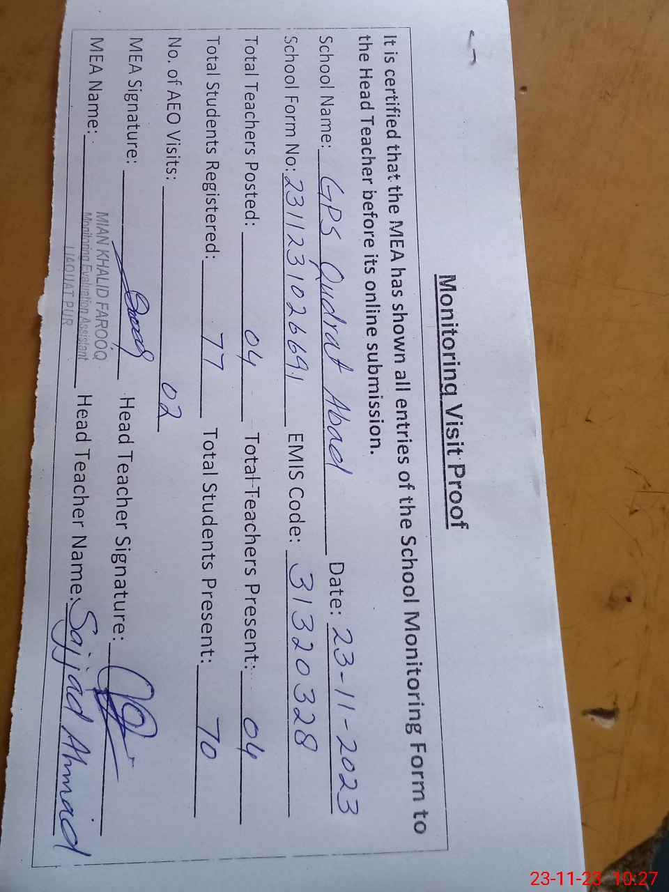 | EMIS Code: 31320328 | Name of School: GPS QUDRAT ABAD | |||
