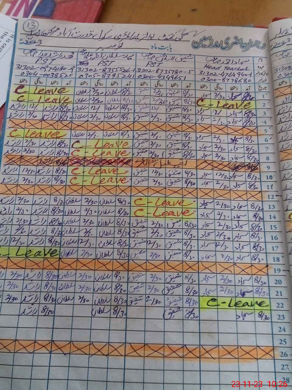 | Name: SA**** AH**** Designation: (School Headmaster's/Headmistress's) PST Phone/Cell Number: 03**** |