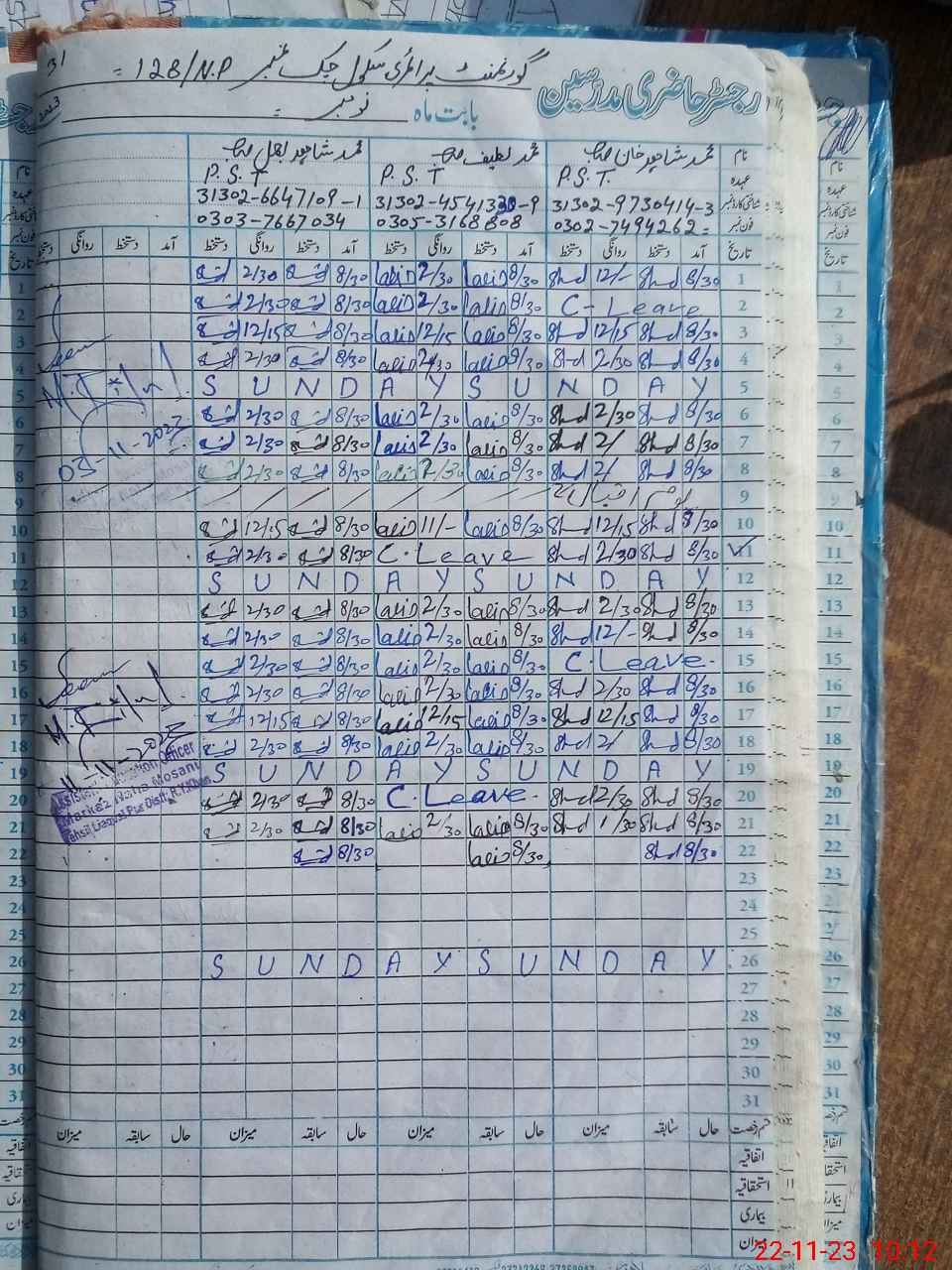 | Name: Mu**** Sh**** Kh**** Designation: (School Headmaster's/Headmistress's) PST/PTC/JV Phone/Cell Number: 03**** |