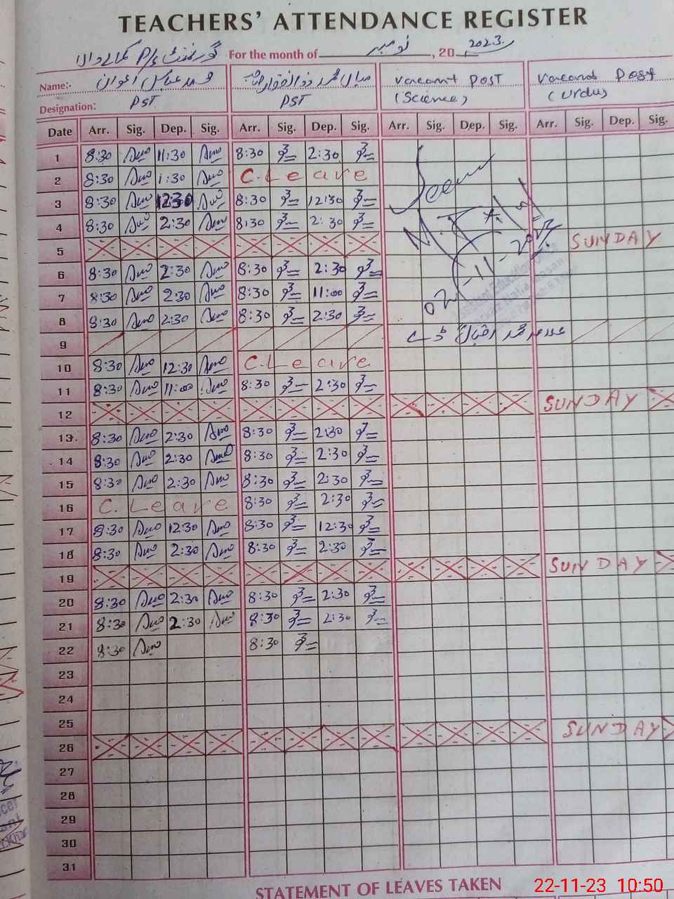 | Name: M.AB**** Designation: (School Headmaster's/Headmistress's) PST Phone/Cell Number: 03**** |