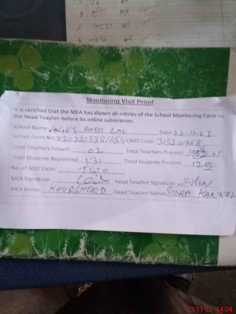 | EMIS Code: 31320968 | Name of School: GGES BASTI LAL | |||