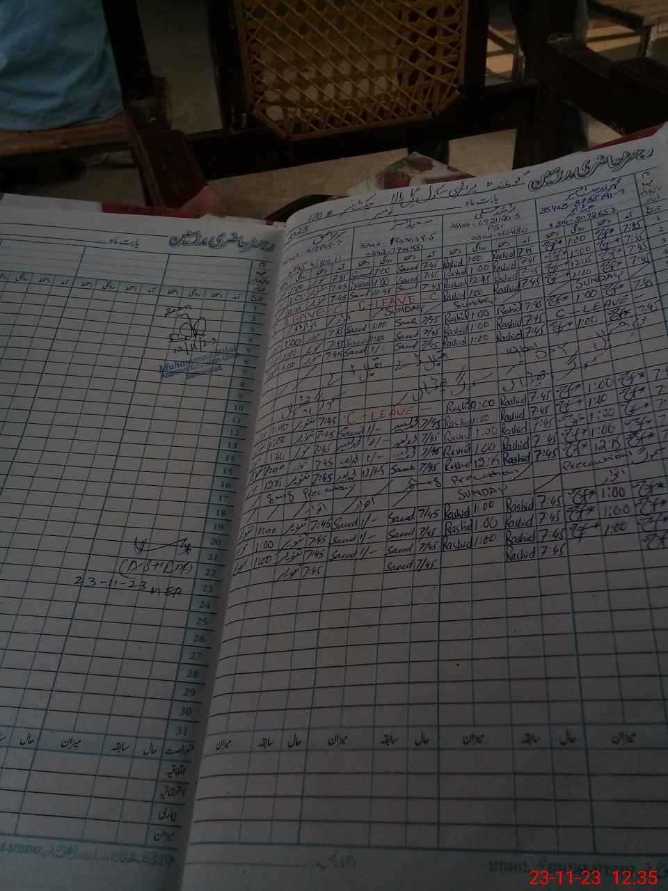 | CNIC | Full Name | Designation | R/C | Absence During Last Calender Month |