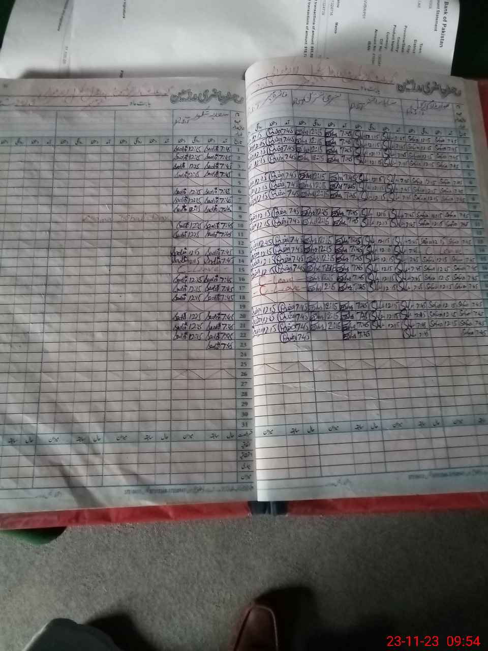 | CNIC | Full Name | Designation | R/C | Absence During Last Calender Month |