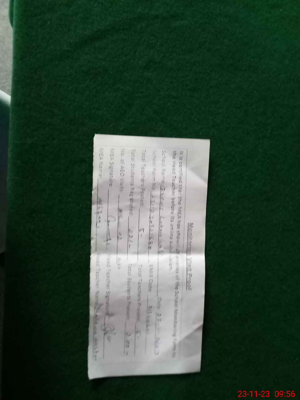 | Monitoring Date: 23-11-2023 | Start Time: 23-11-2023 09:21 AM | End Time: 23-11-2023 09:56 AM | Name of MEA: Mu**** As**** | |