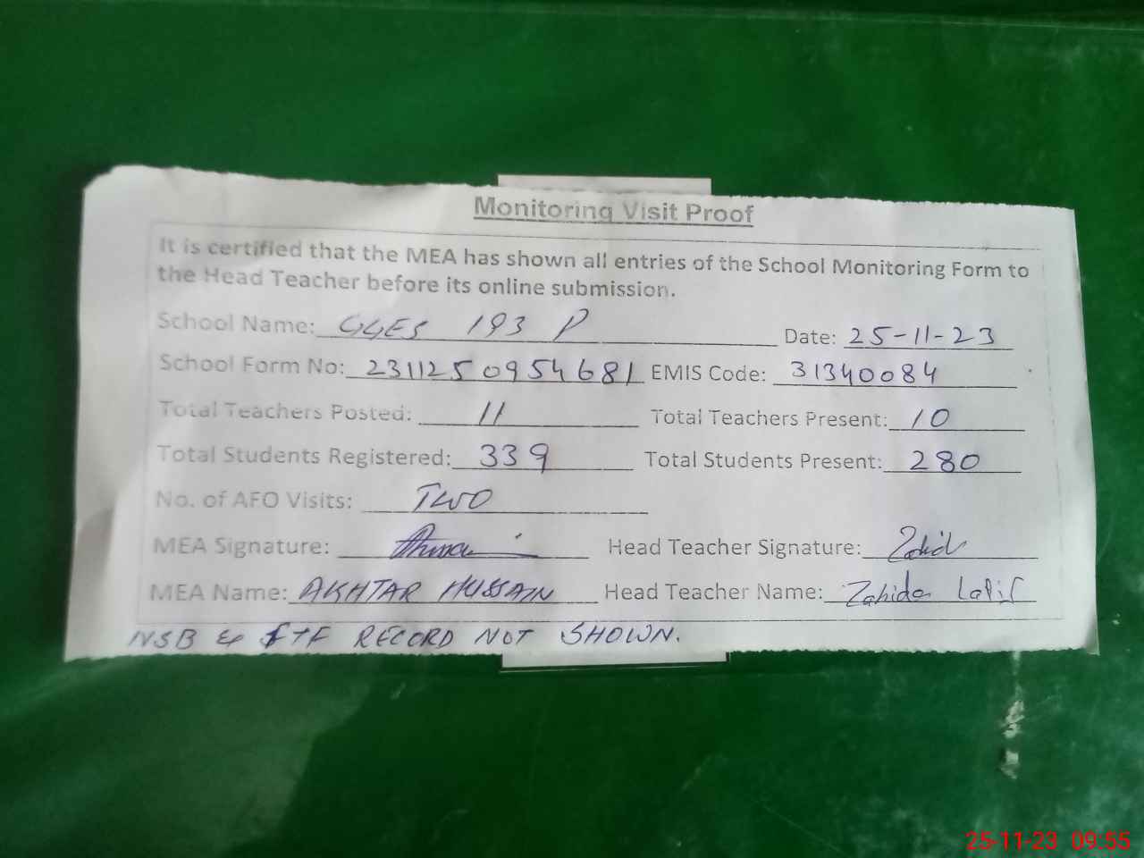 | Certified that this School was Inspected by the Undersigned MEA/DMO Today and the Information Stated Above is as Per Record. | |||||