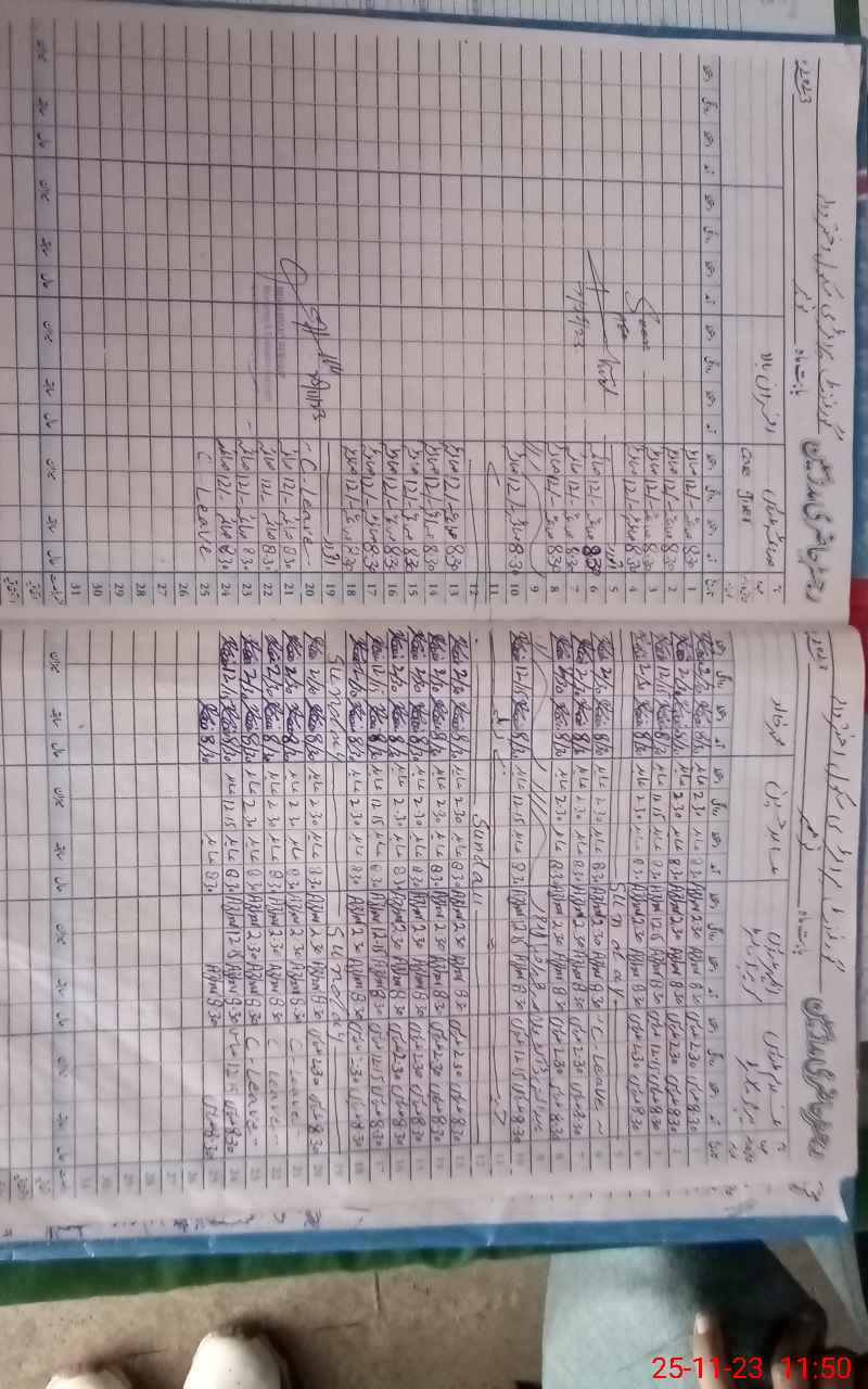 | CNIC | Full Name | Designation | R/C | Absence During Last Calender Month |