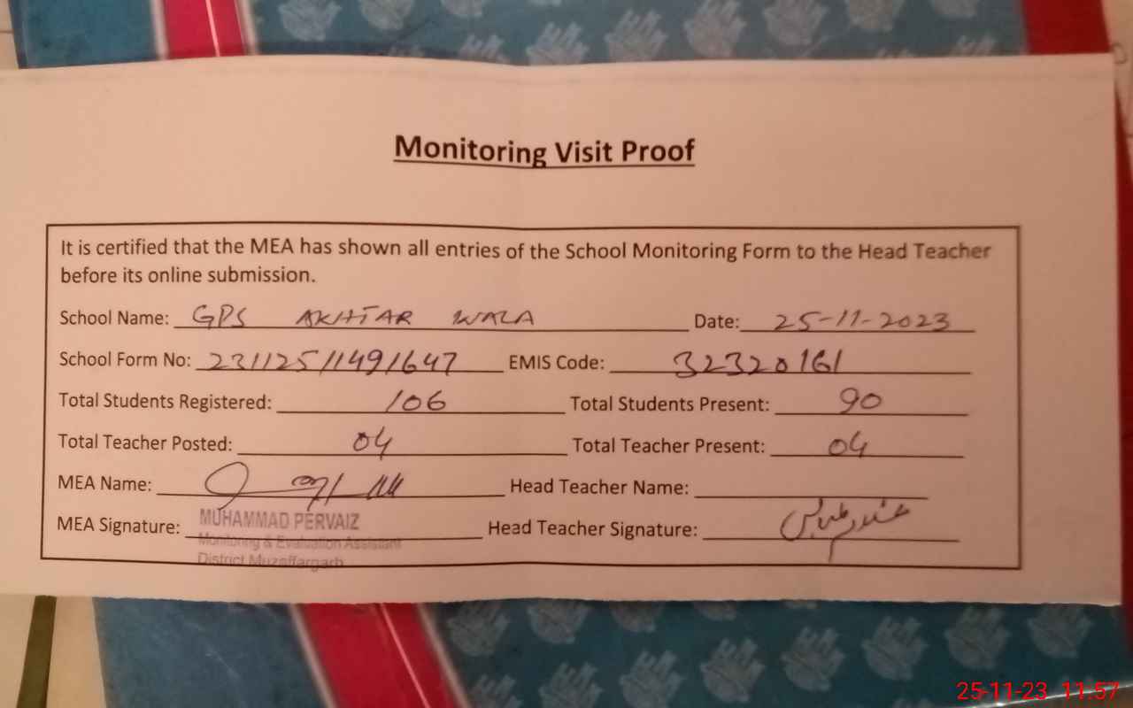| EMIS Code: 32320161 | Name of School: GPS AKHTER WALA | |||