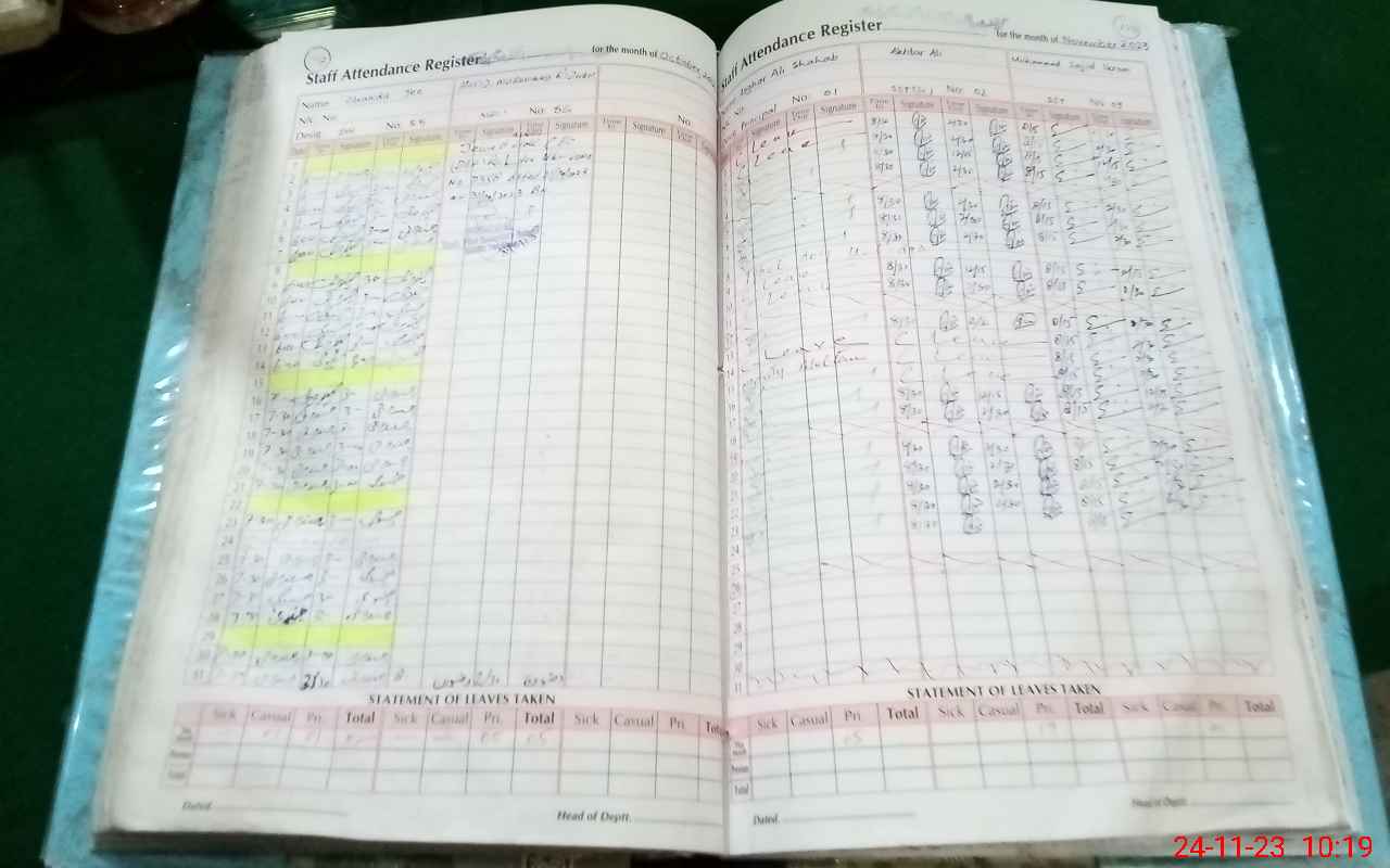 | CNIC | Full Name | Designation | R/C | Absence During Last Calender Month |